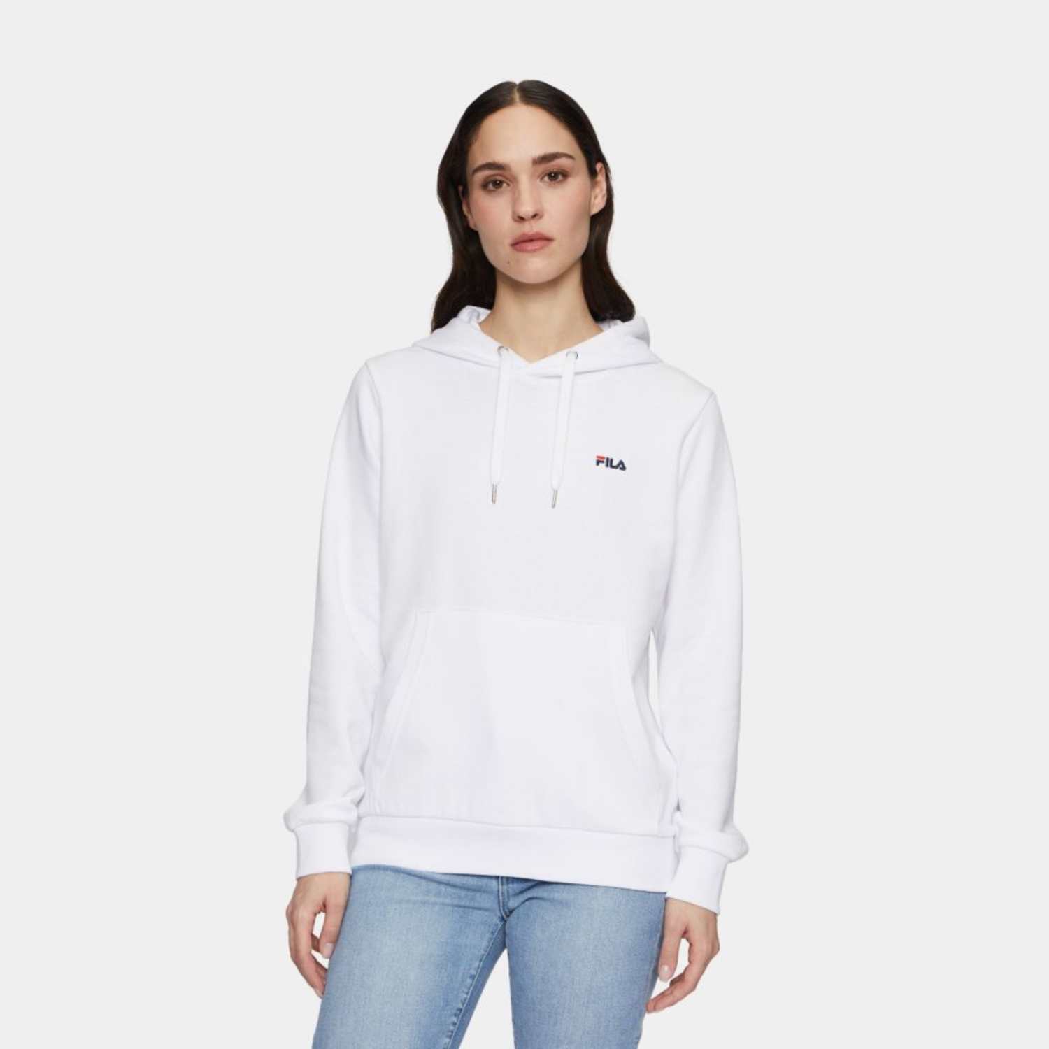 Regular fit hoodie made out of an organic cotton blend french terry quality. This classic hoodie has a kangaroo pocket, rib cuffs and an adjustable hood. It is branded with a small embroidered linear Fila logo on the chest.