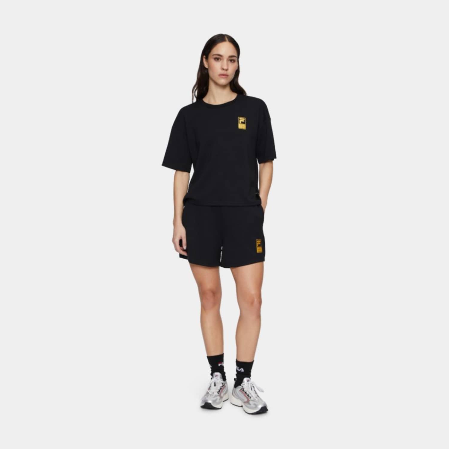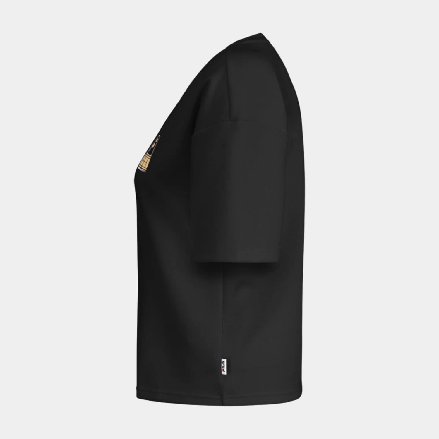 Loose fit tee in a viscose blend interlock quality. The tee has a printed F-box tennis society graphic at the chest, and branded with a Fila linear logo flag label at lower left side seam.
