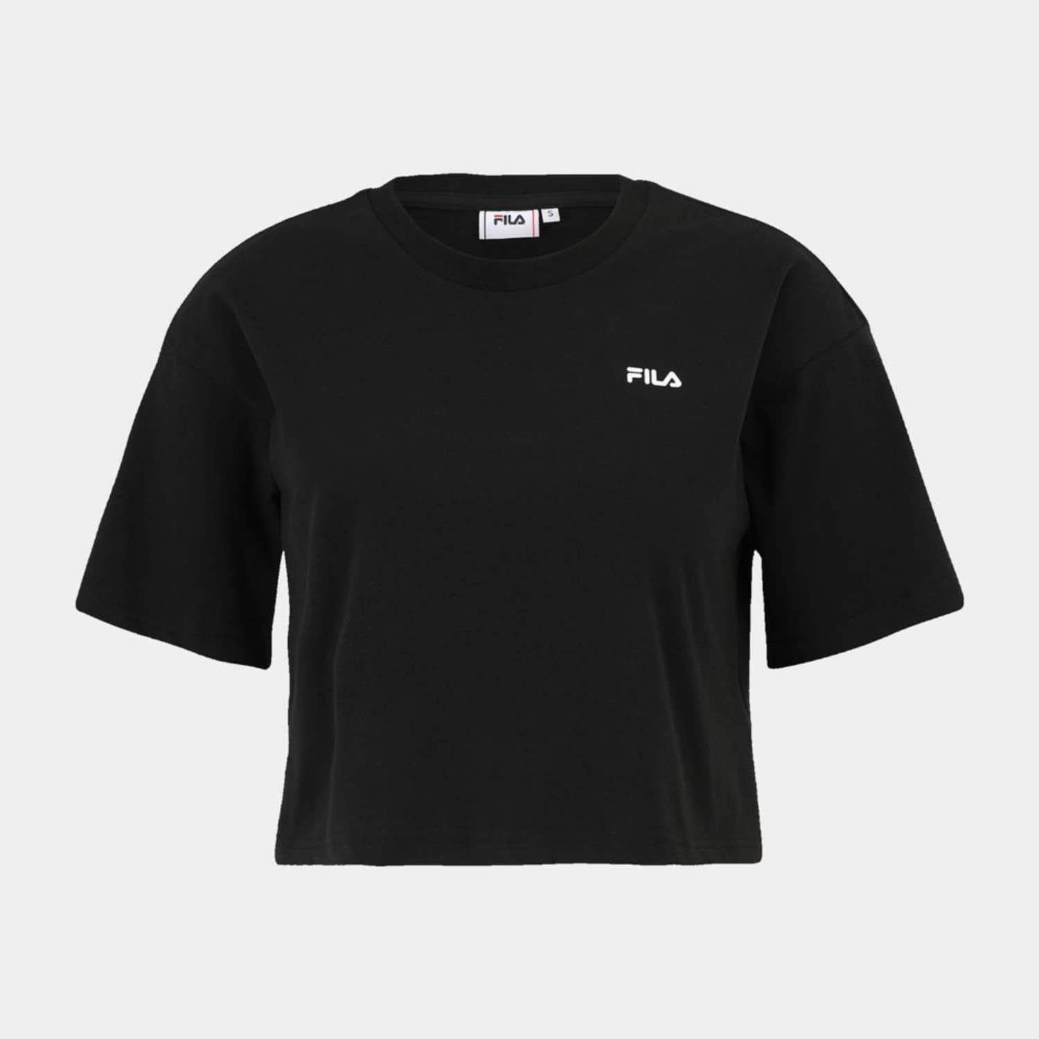 Cropped, loose fit tee made out of an organic cotton single jersey. This classic t-shirt is branded with a small printed linear Fila logo at chest.