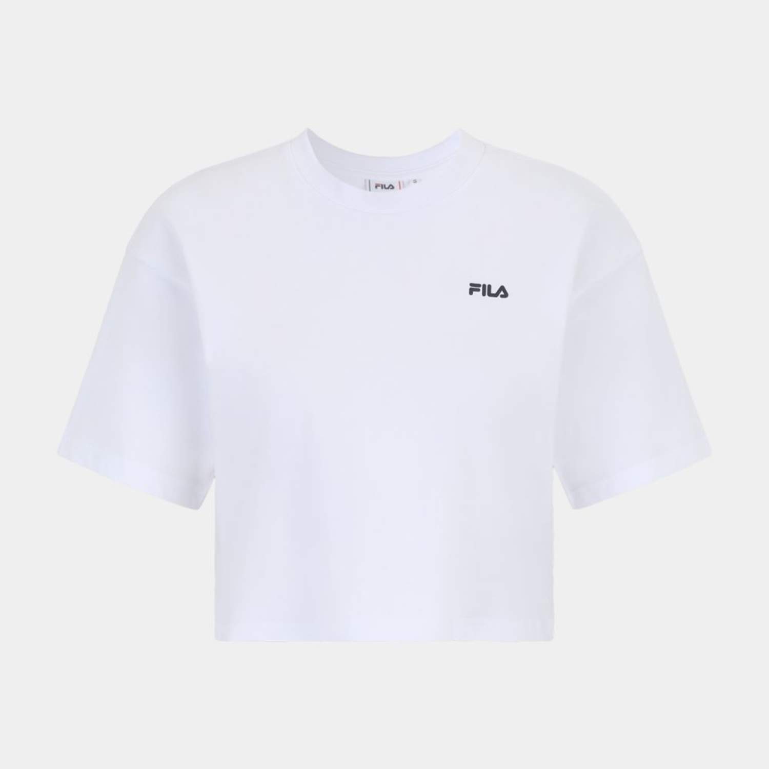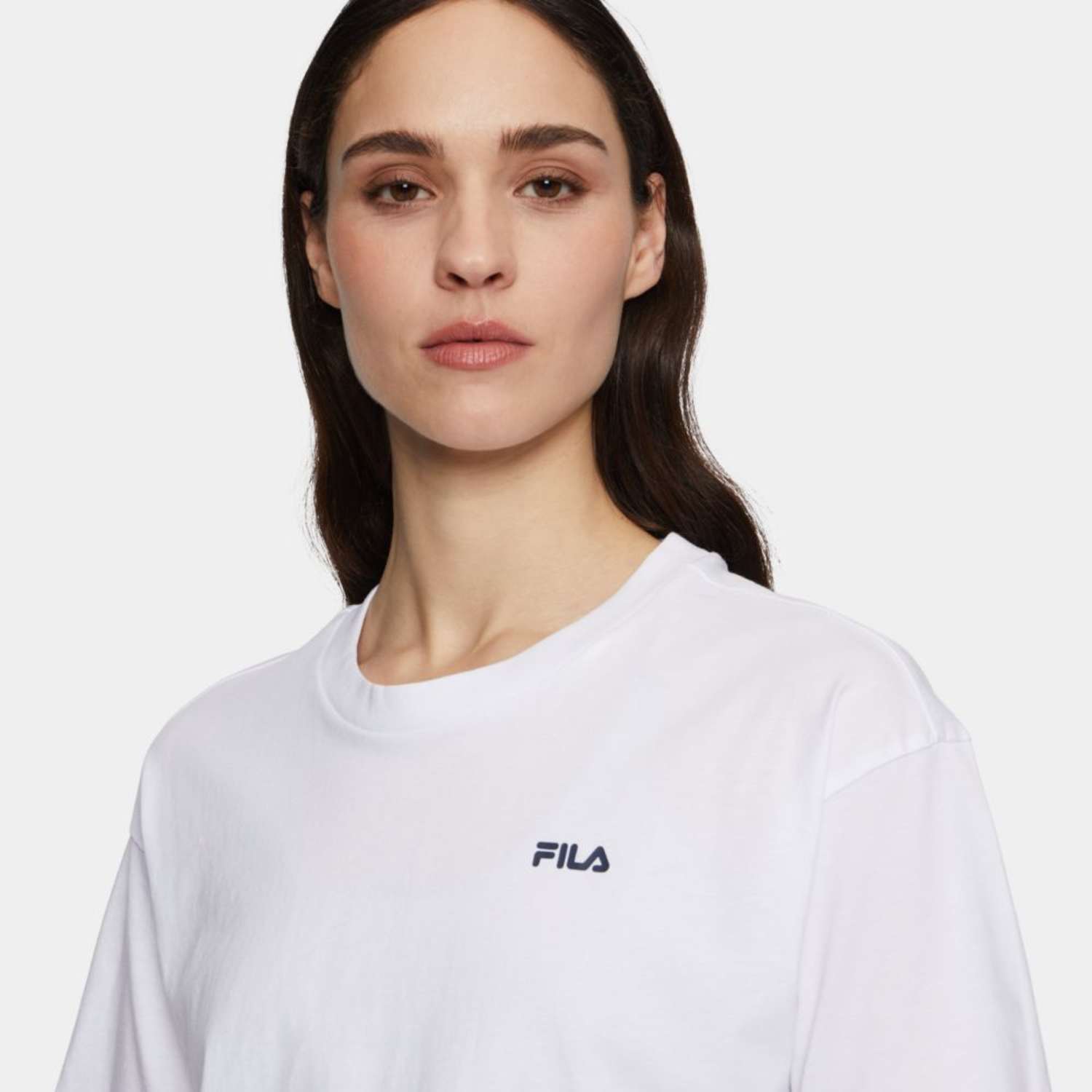 Cropped, loose fit tee made out of an organic cotton single jersey. This classic t-shirt is branded with a small printed linear Fila logo at chest.