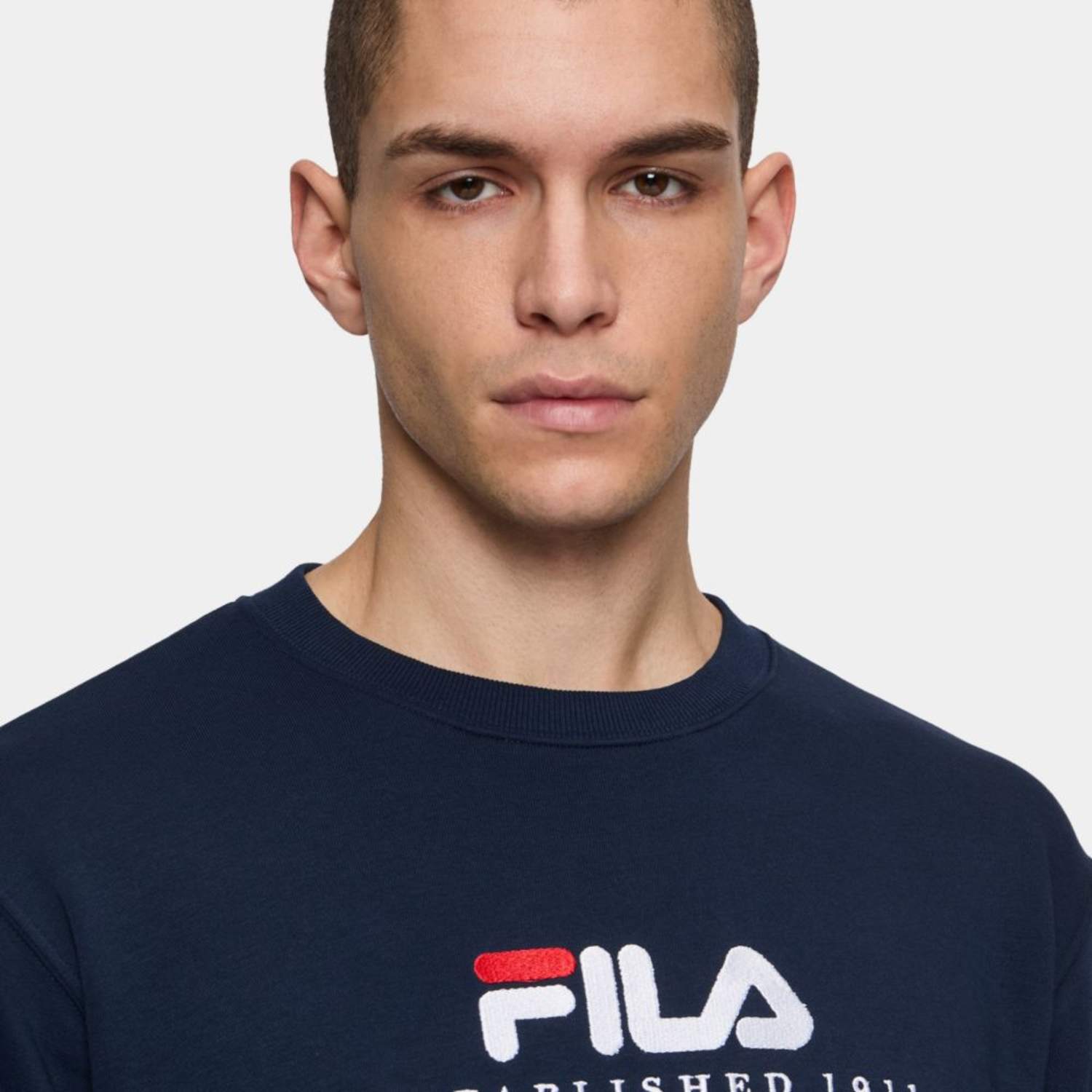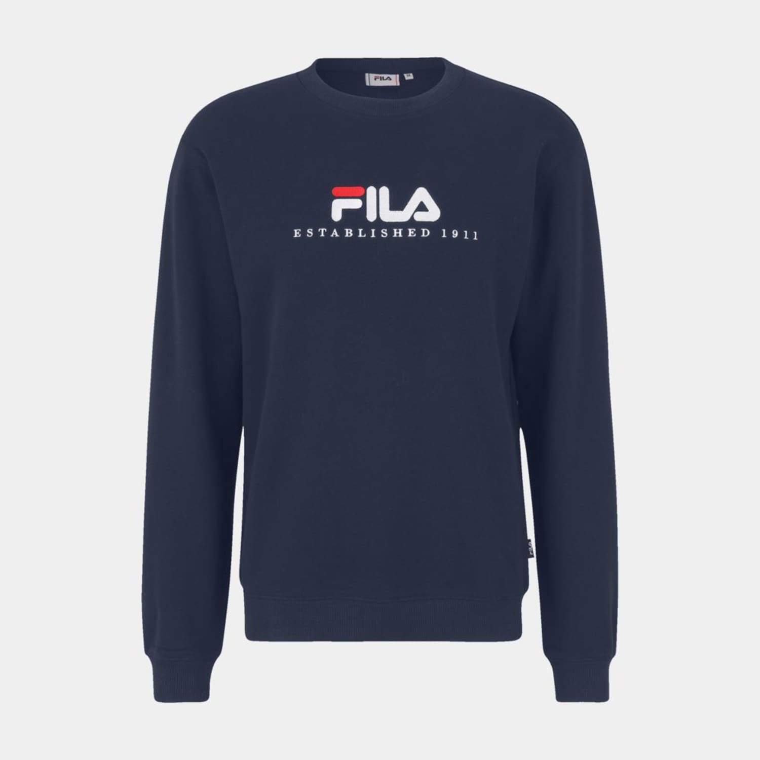 Unisex sweatshirt in a french terry quality. Branded with an embroidered Fila logo graphic at front and a Fila flag label at the side. The sweatshirt has rib cuffs at sleeve and hemline.