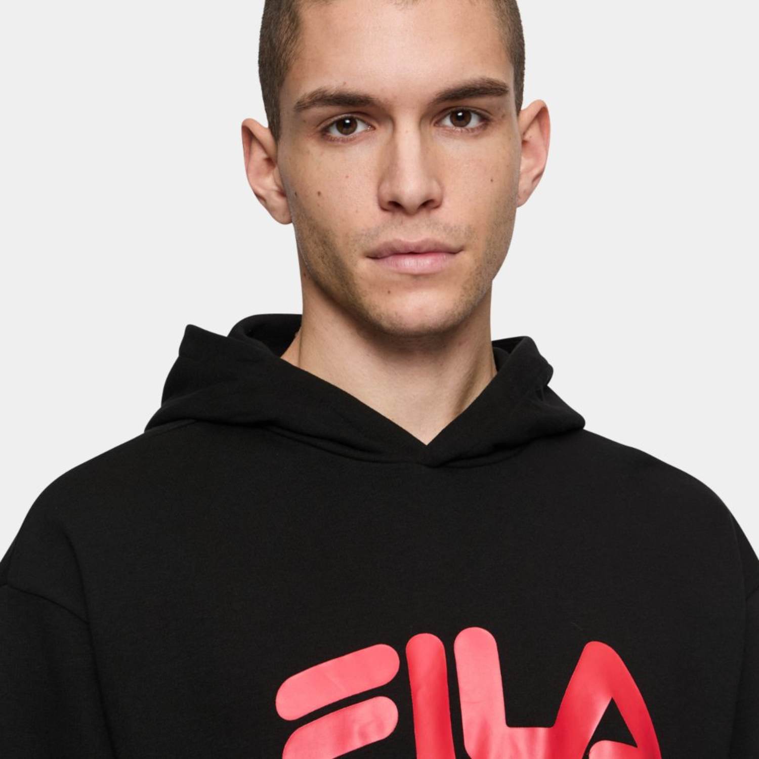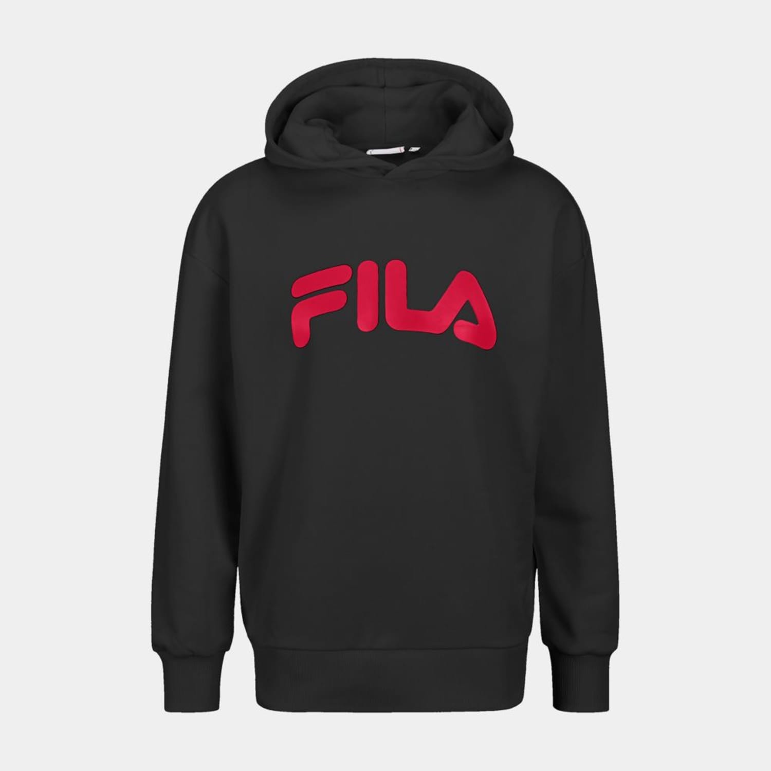 Loosely fitted hoodie with slightly dropped shoulders made out of a cotton blend french terry quality. The hoody has a bold arched Fila logo at center front and an embroidered Fila F-box logo at sleeve.