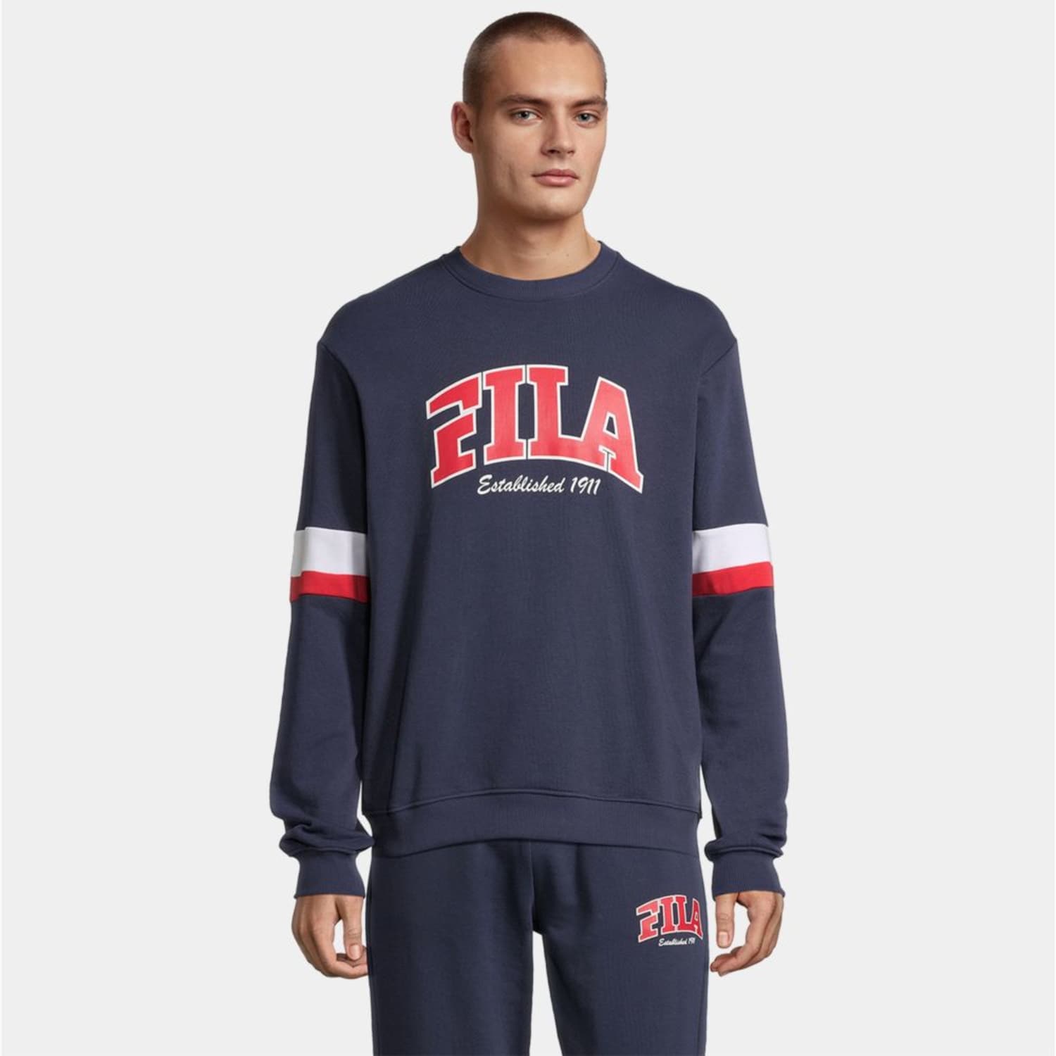 Regular fit sweatshirt made out of a cotton blend french terry quality with color blocked sleeves. The shirt is branded with a varsity style Fila logo at center front and a small Fila flag label in the side seam.