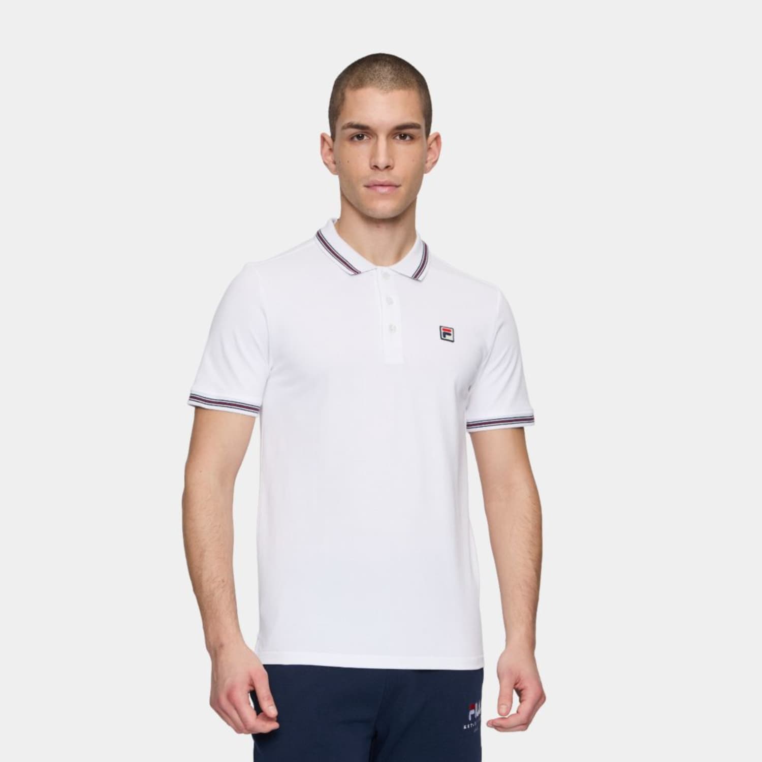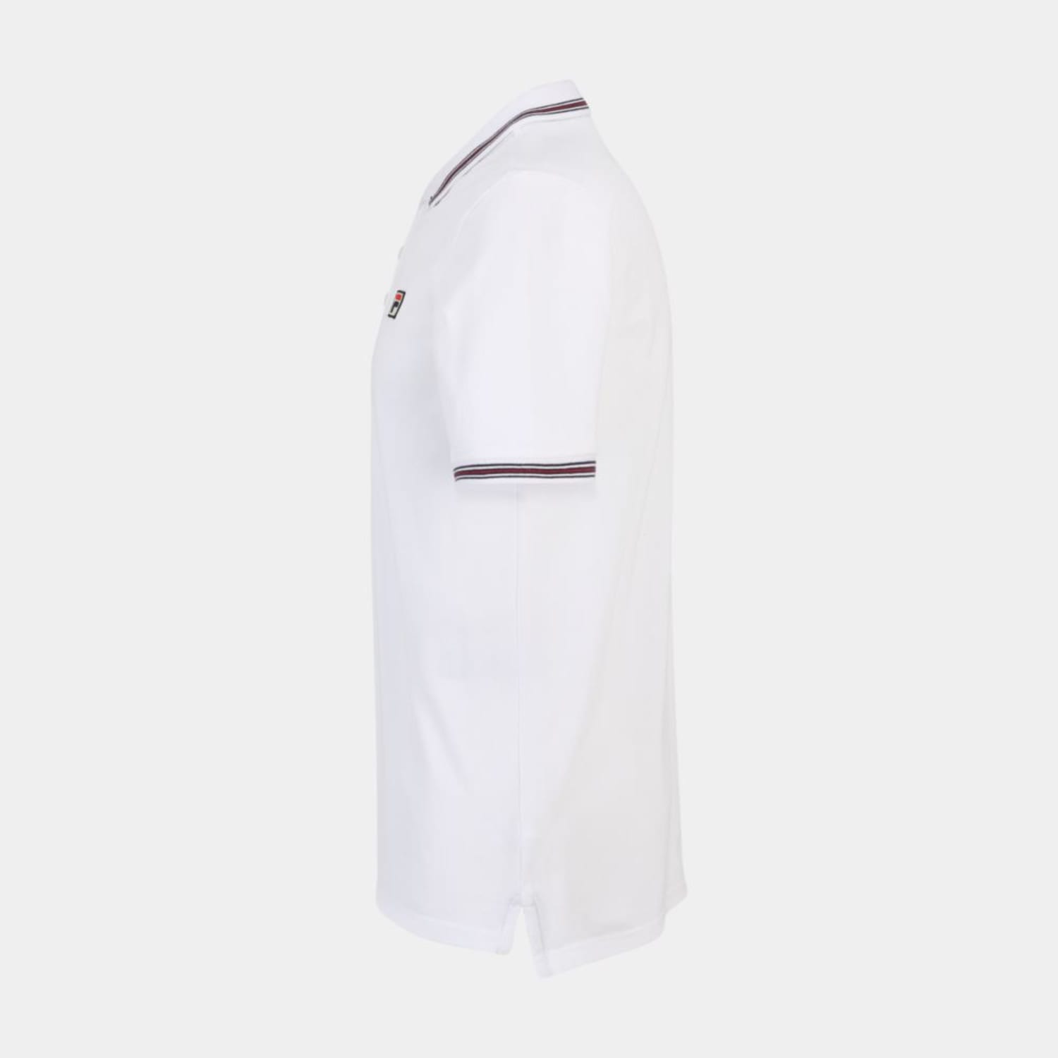 This slim fit polos shirt is a classic style in a cotton pique quality. The collar and sleeve cuffs have a knitted Fila heritage stripe, a feature which can also be found on the inside of the button placket. The buttons are branded with the Fila logo and the polo shirt has the Fila F-box badge with bamboo backing on the chest.