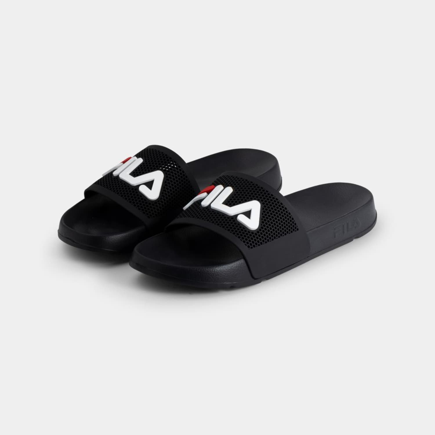 A practical, stylish and comfortable summer slide with a single strap with hexagon open pattern and pronounced 3D FILA logo.