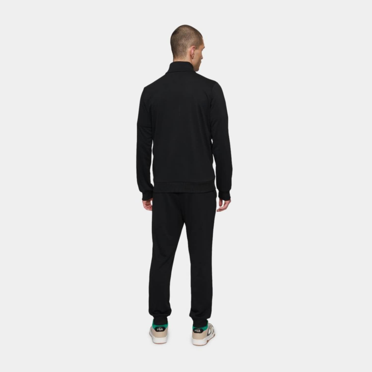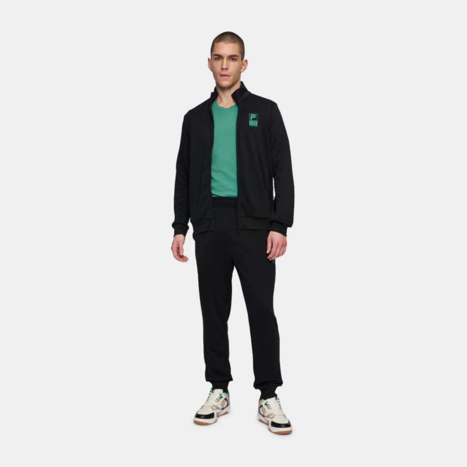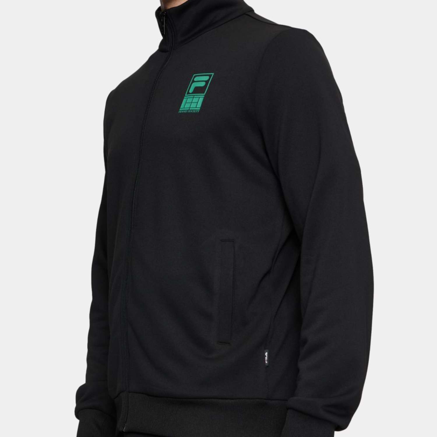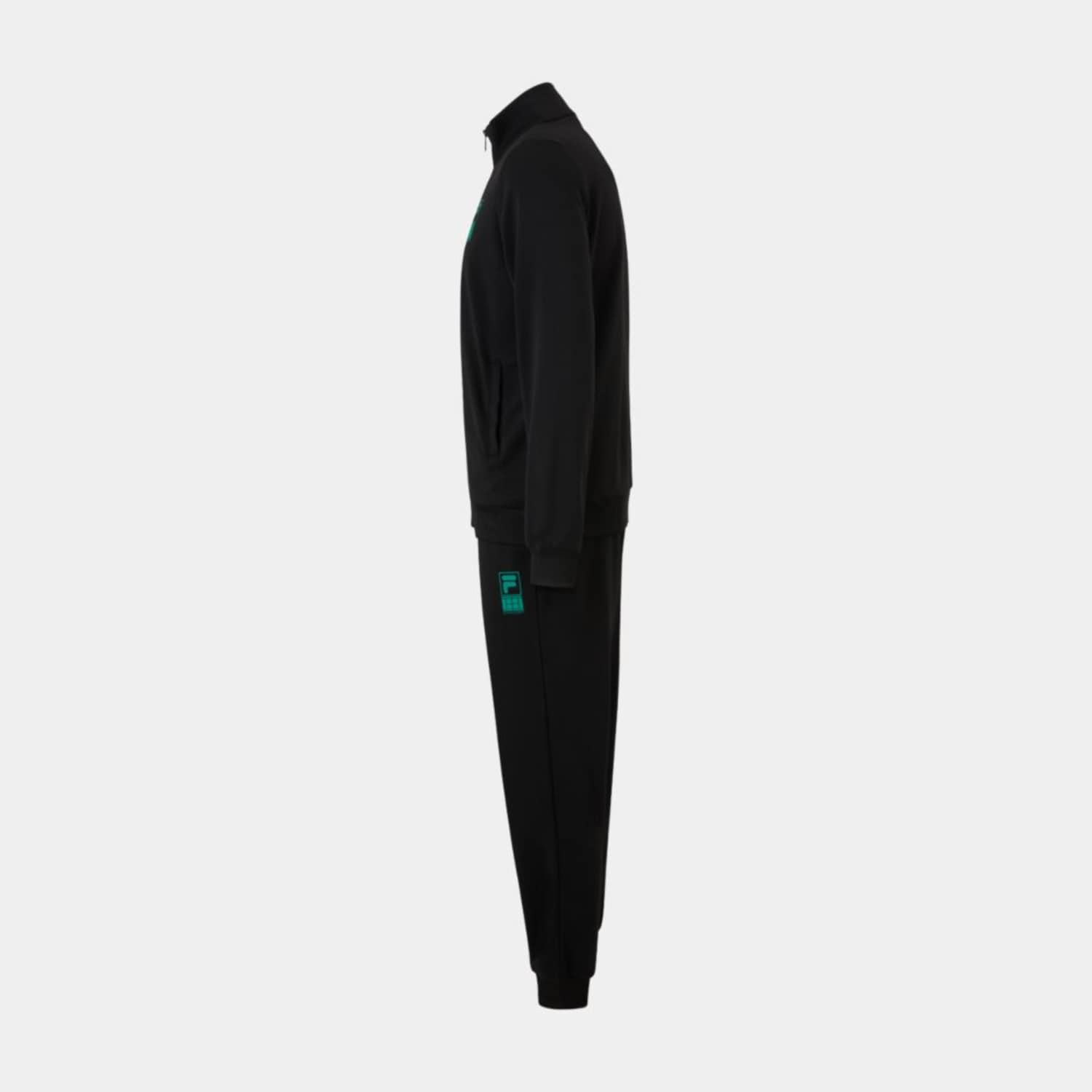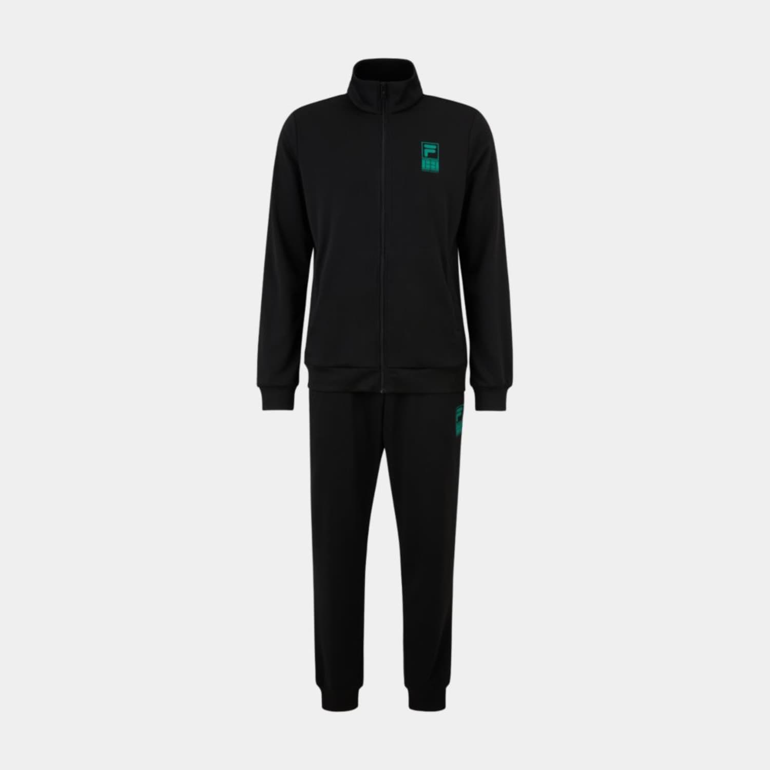 Regular fit, cuffed track jacket and pant in a polyester french terry quality. The jacket has a pockets at front, a printed F-box tennis society graphic at the chest and a small Fila flag label is attached in the left side seam. The pant has an adjustable waistline, pockets in side seams and rib cuffs at leg openings. They have a printed F-box tennis society graphic at the front of the left leg and a small Fila flag label is attached in the left side seam.