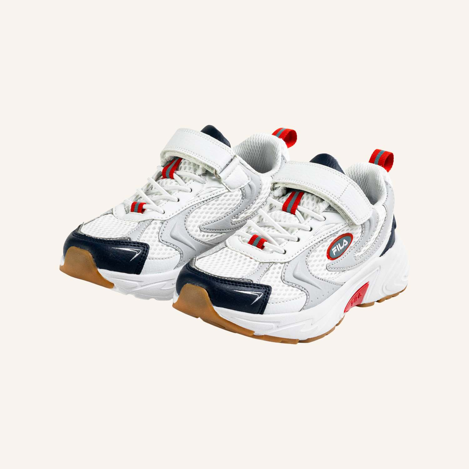 gender: Kids Unisexstyle: Sneakercolor: White-Fila Redmaterial: 60% PU, 40% TEXTILEfabrication number / color code: FFK0262/13041 ___Medico Footwear Fashion B.v., Frankfurtstraat 40, 1175 RH Lijnden, Netherlands Product Nr.: 1400244