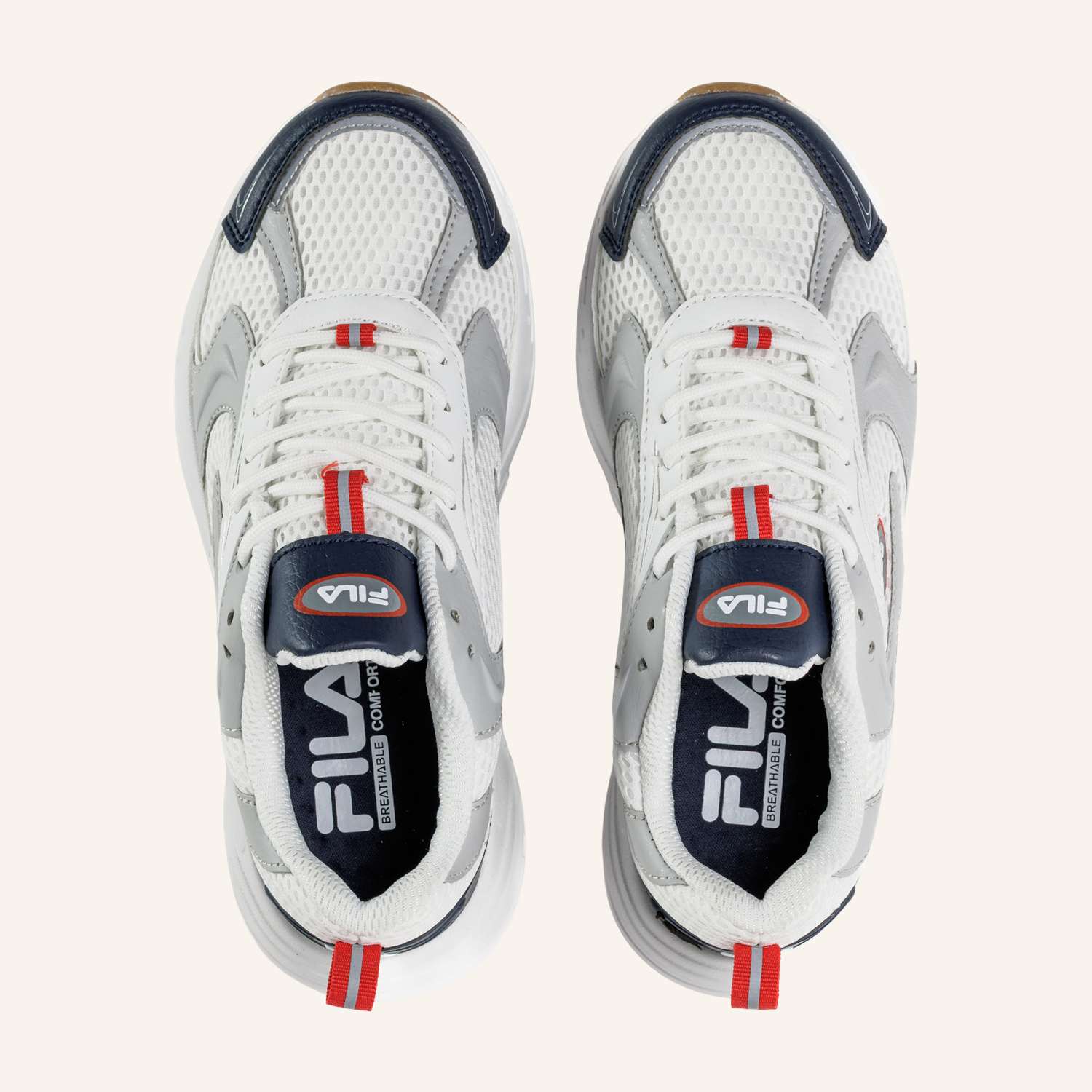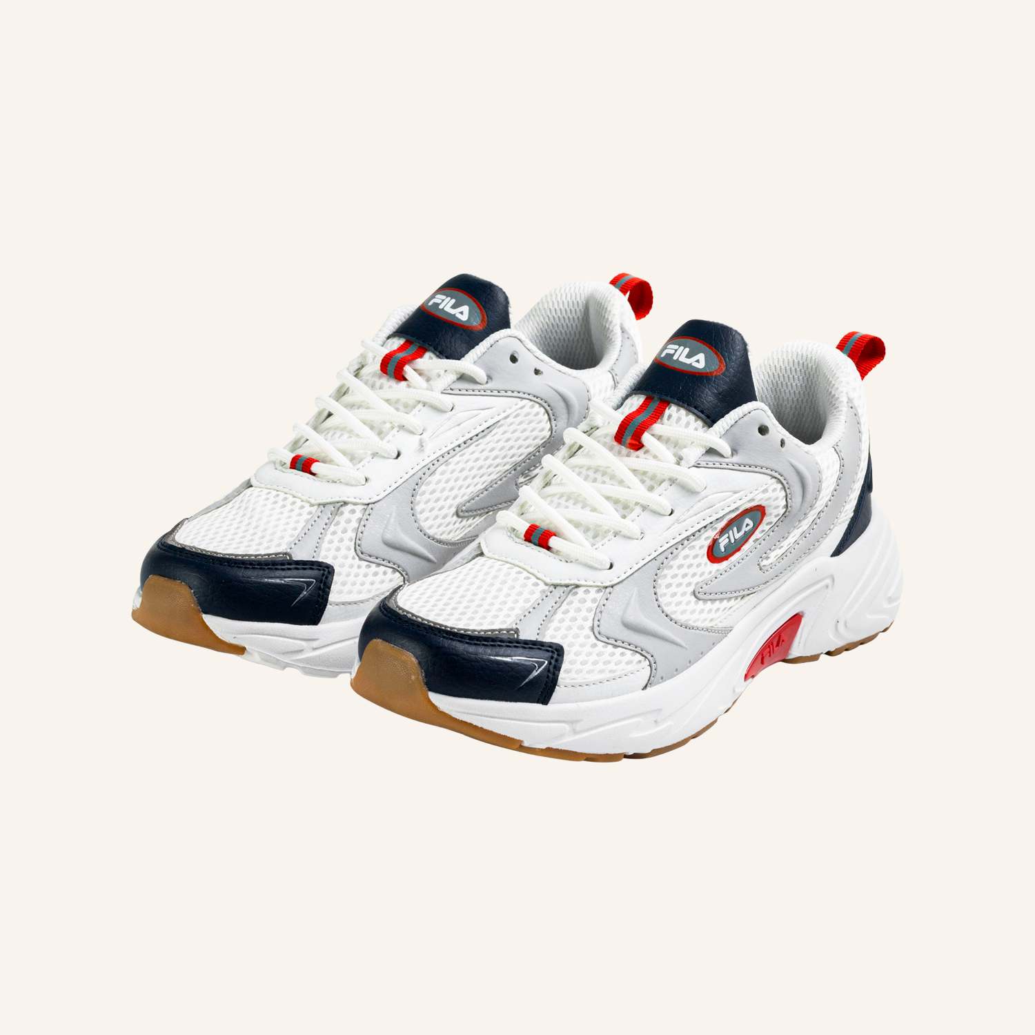 gender: Kids Unisexstyle: Sneakercolor: White-Fila Redmaterial: 60% PU, 40% TEXTILEfabrication number / color code: FFT0144/13041 ___Medico Footwear Fashion B.v., Frankfurtstraat 40, 1175 RH Lijnden, Netherlands Product Nr.: 1400289
