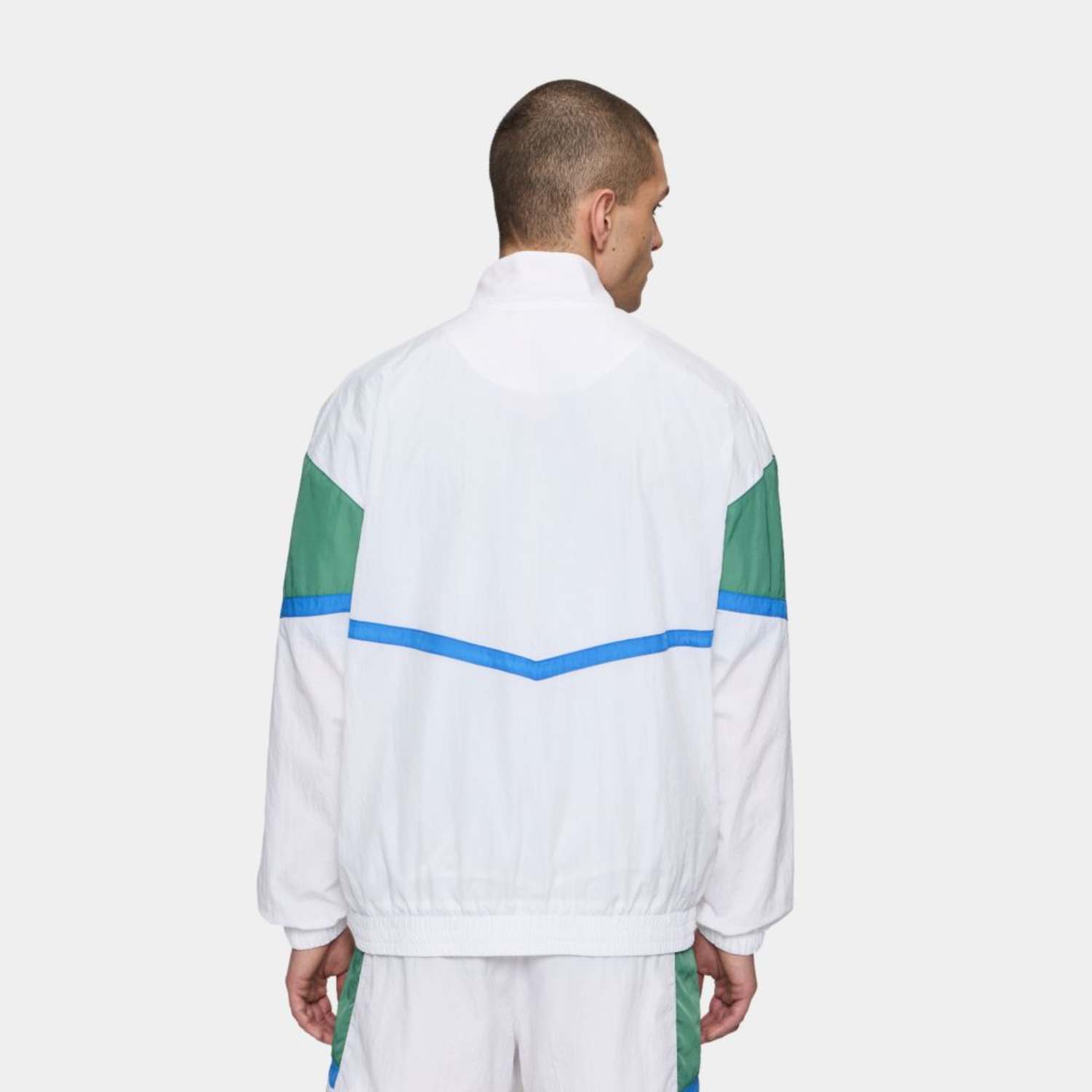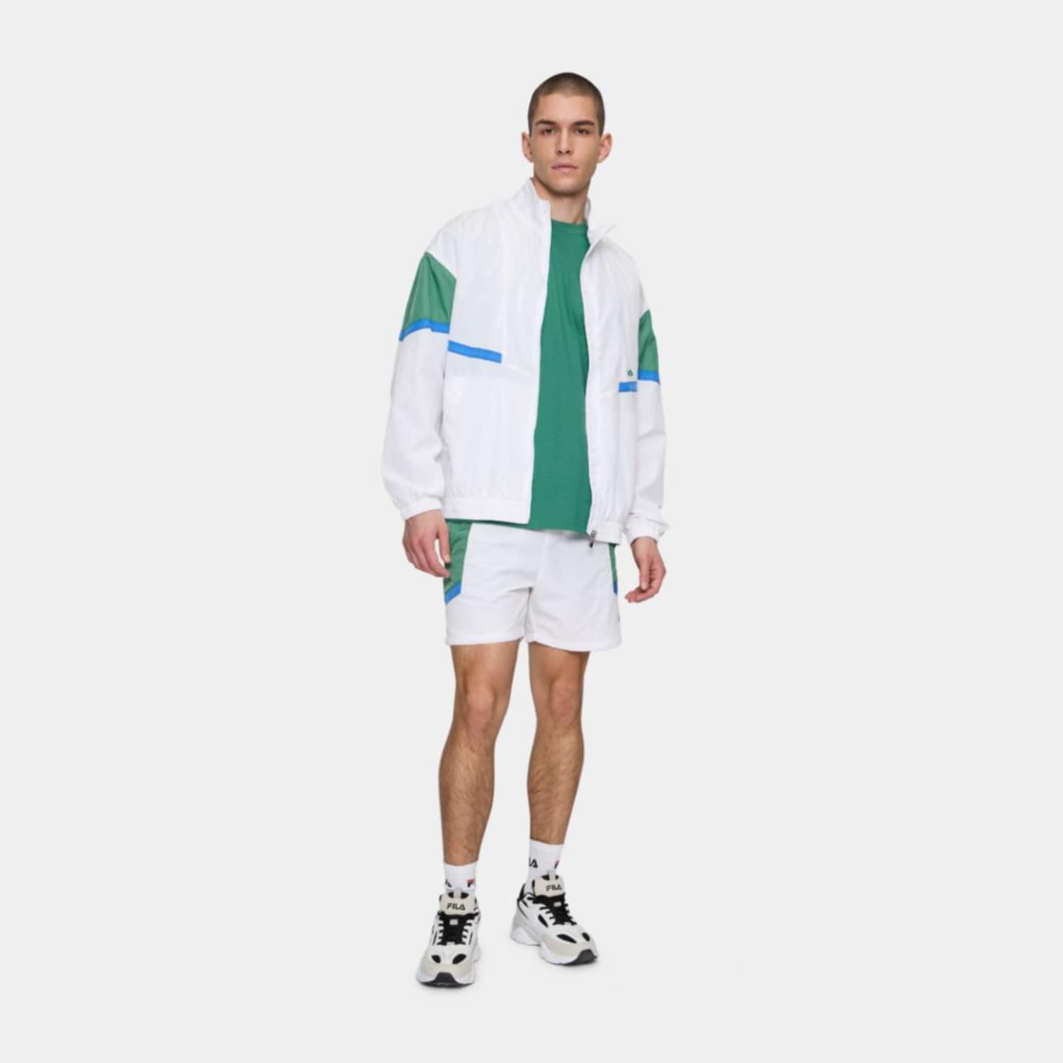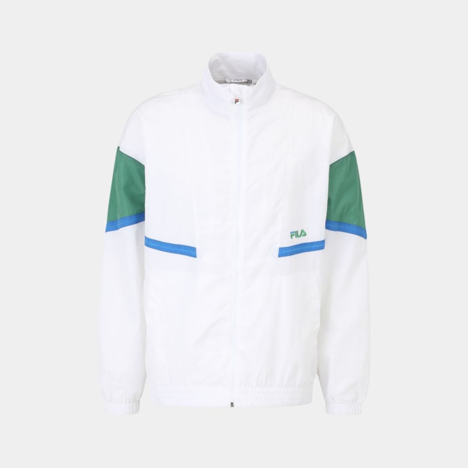 Relaxed fit woven track jacket made in a thin nylon crinkle quality. The jacket has a thin mesh lining, elasticated cuffs, a F-box zipper puller and pockets at front. The color blocking on this jacket is inspired by an archive Fila style and it is branded with a printed Fila logo.