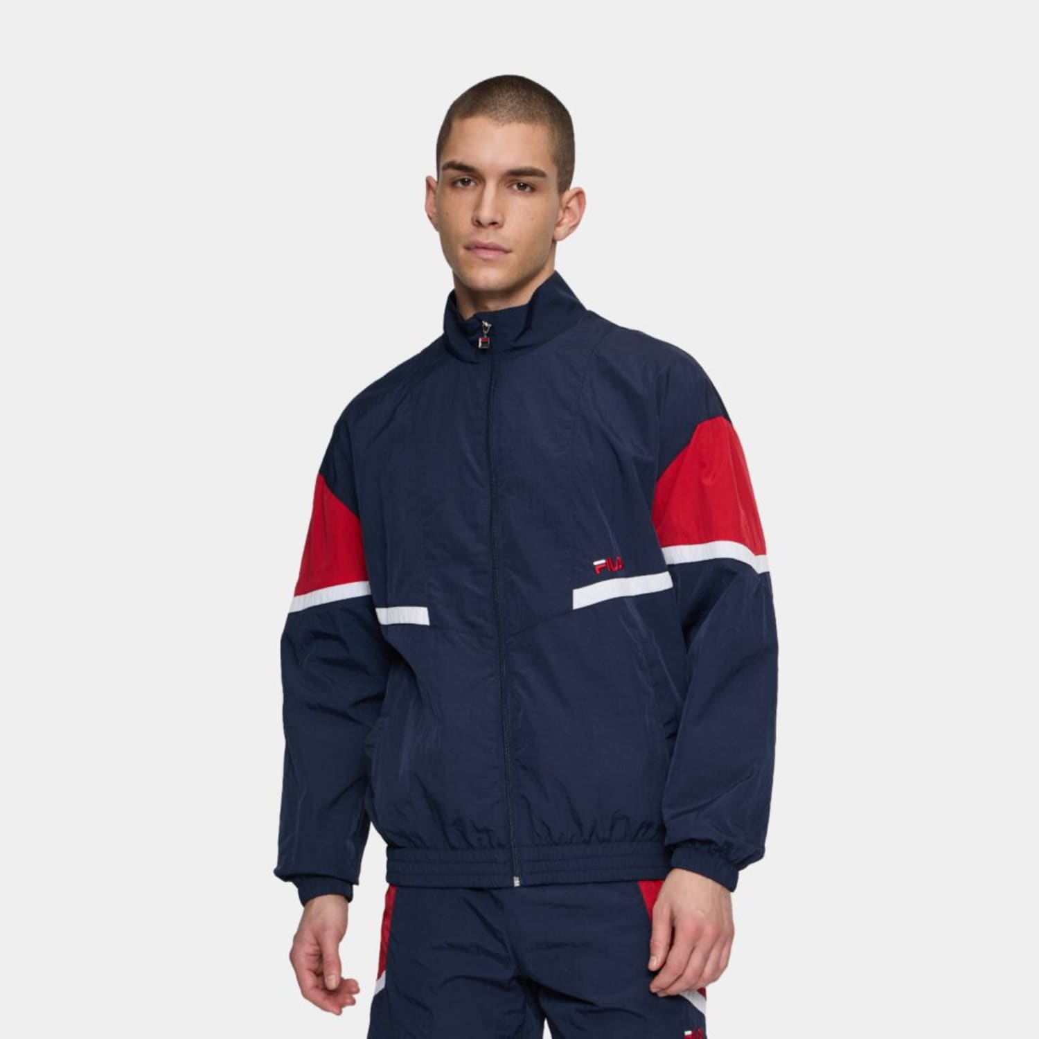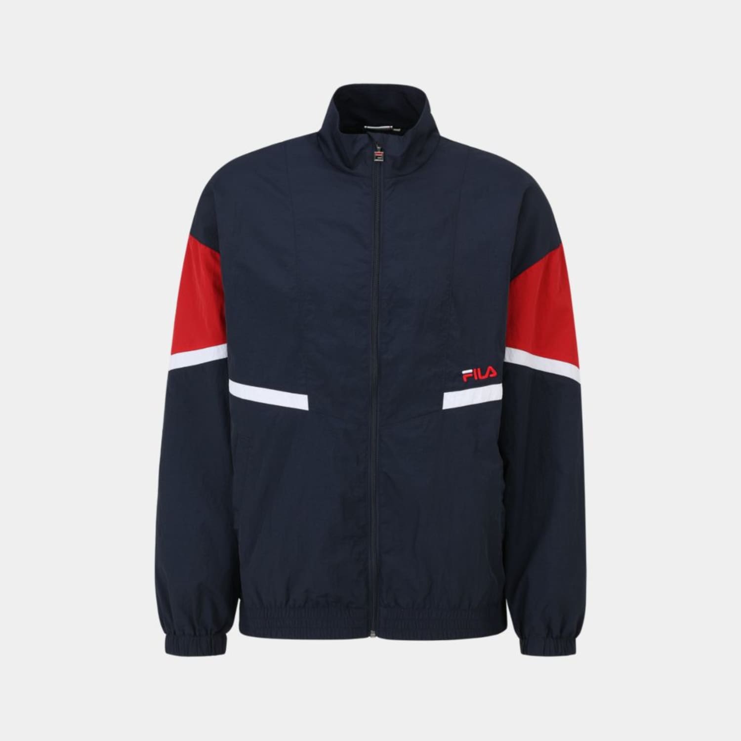 Relaxed fit woven track jacket made in a thin nylon crinkle quality. The jacket has a thin mesh lining, elasticated cuffs, a F-box zipper puller and pockets at front. The color blocking on this jacket is inspired by an archive Fila style and it is branded with a printed Fila logo.