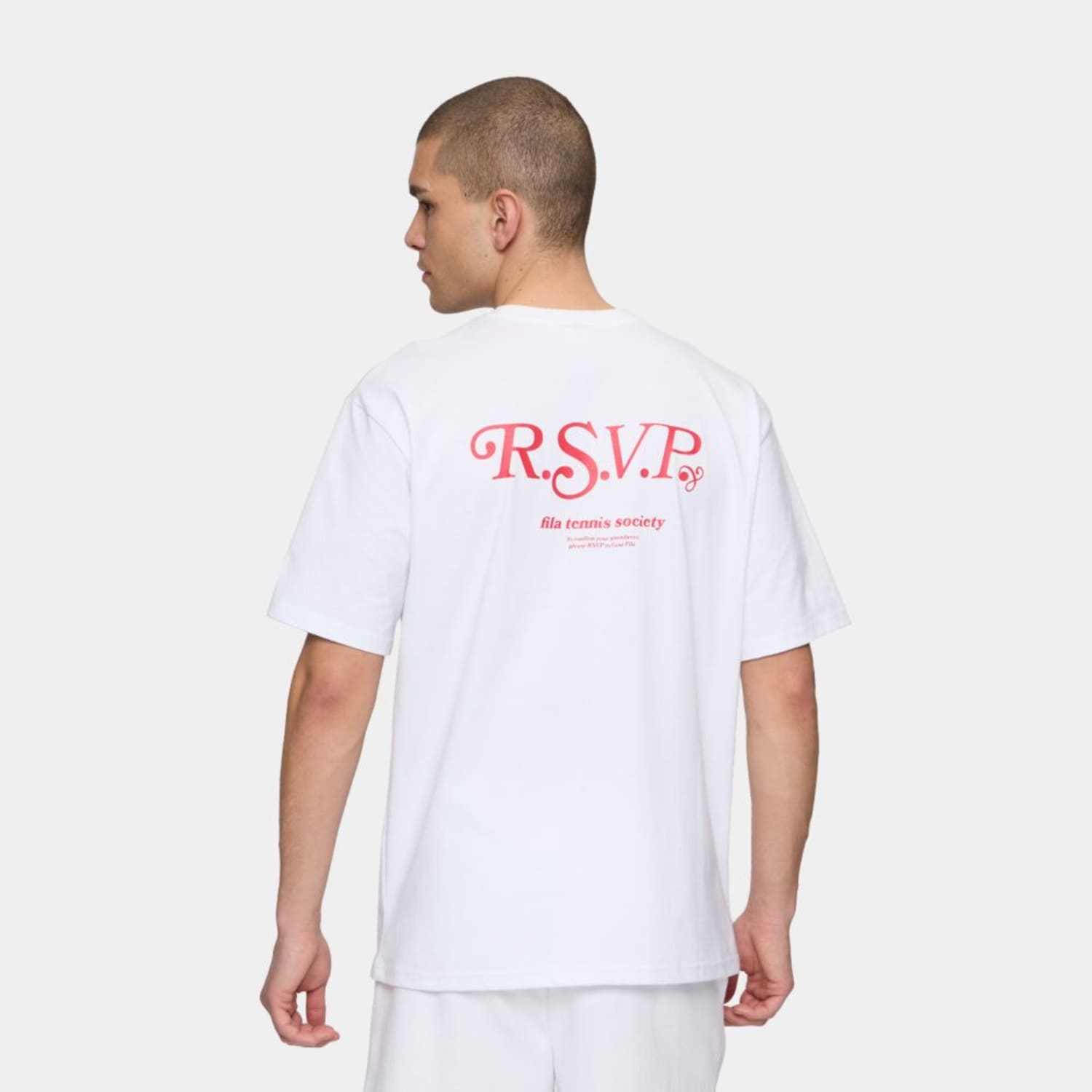 Loosely fitted tee made out of a cotton single jersey quality. The tee has embroidered graphics at front and printed at back and a small embroidered Fila F-box logo at the left sleeve.