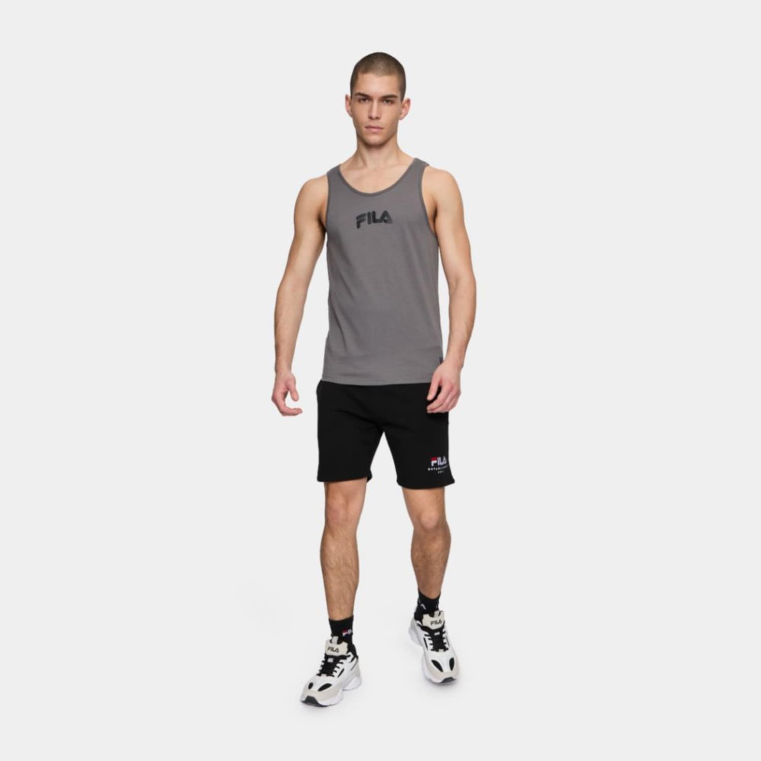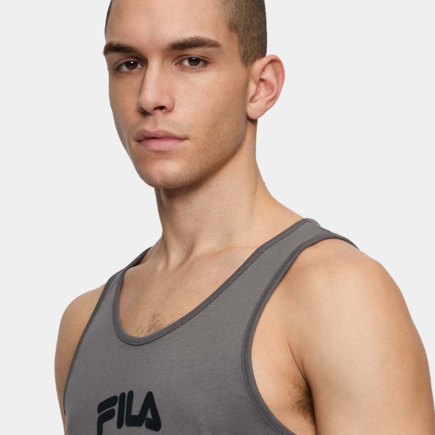 Slim fit tank top made out of a cotton single jersey quality, with rib bindings at neckline and armholes. The tank has an arched Fila logo at center front and an embroidered Fila F-box logo at front hemline.