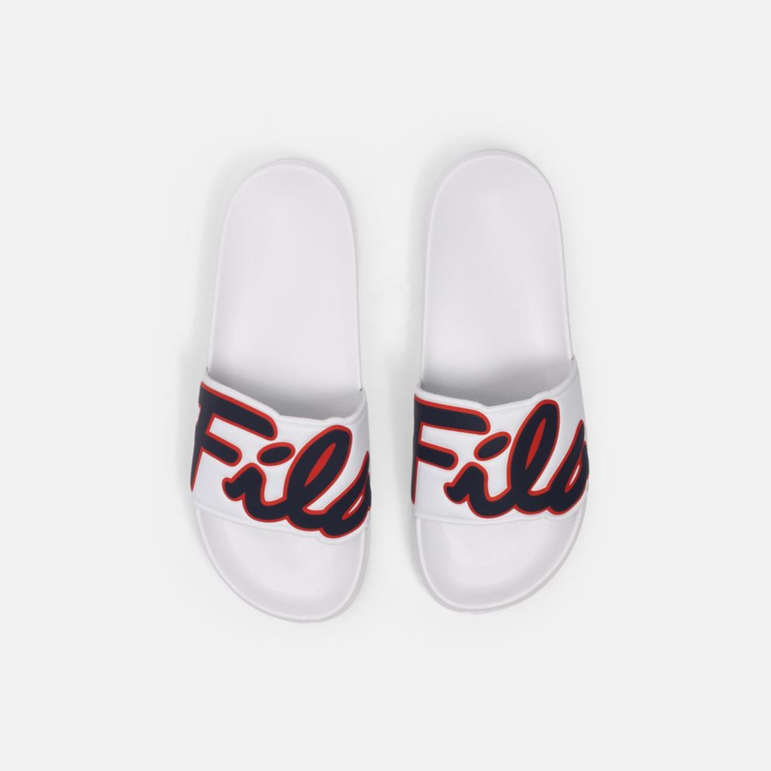 gender: men shoe type: slipper color: white / blue / red logo: linear logo on strap material: 100% pu fabrication number / color code: FFM0304 / 13037 ___ Medico Footwear Fashion B.v., Frankfurtstraat 40, 1175 RH Lijnden, Netherlands