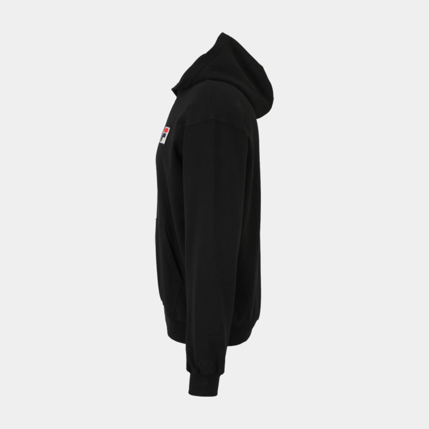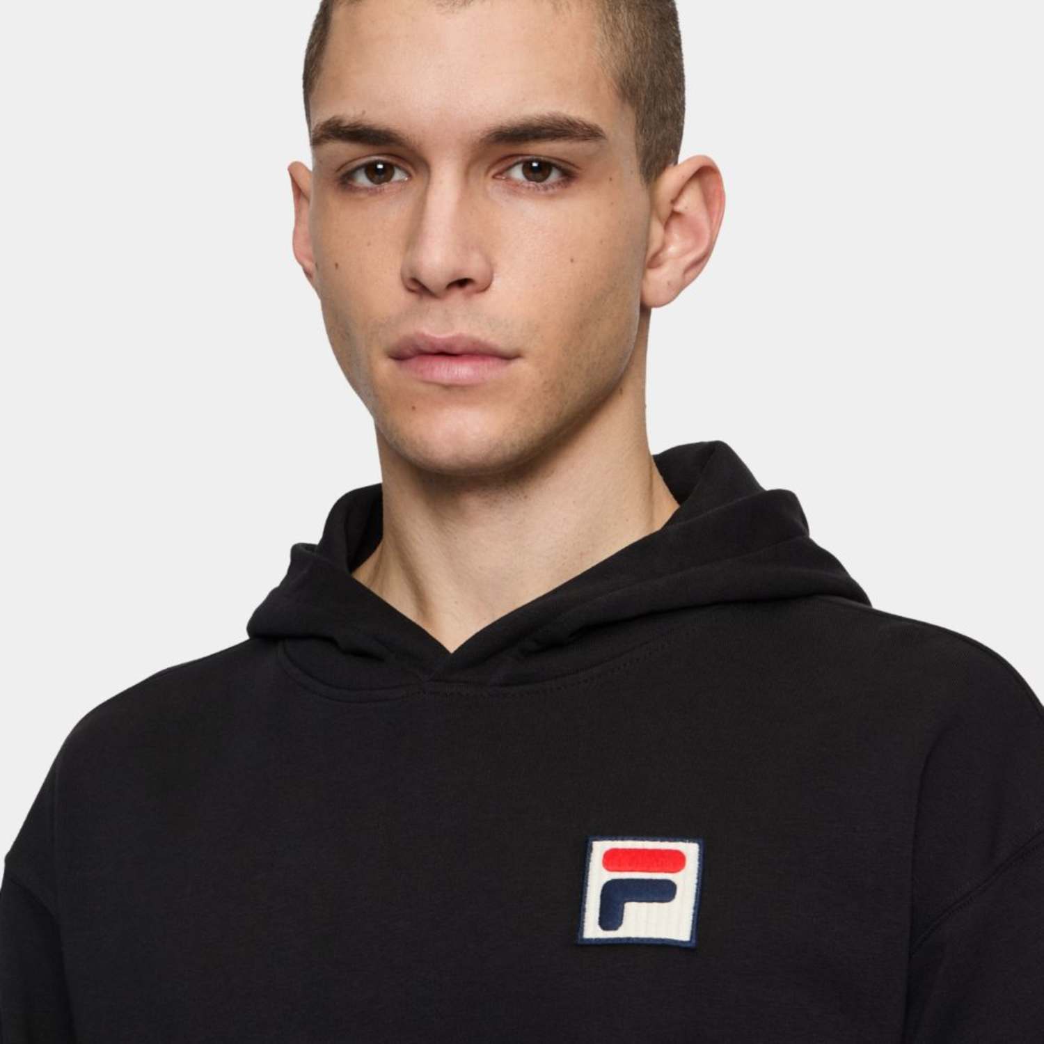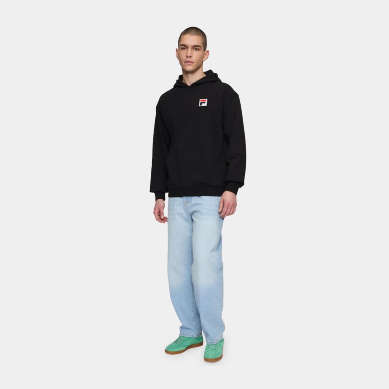 Unisex hoodie in a relaxed fit made out of a dense dry cotton blend quality. It has a kangaroo pocket and ribbed hem and cuffs. The hoody is branded with an updated large F-box badge with bamboo backing at chest and a tonal dense embroiderer Fila logo at sleeve end.