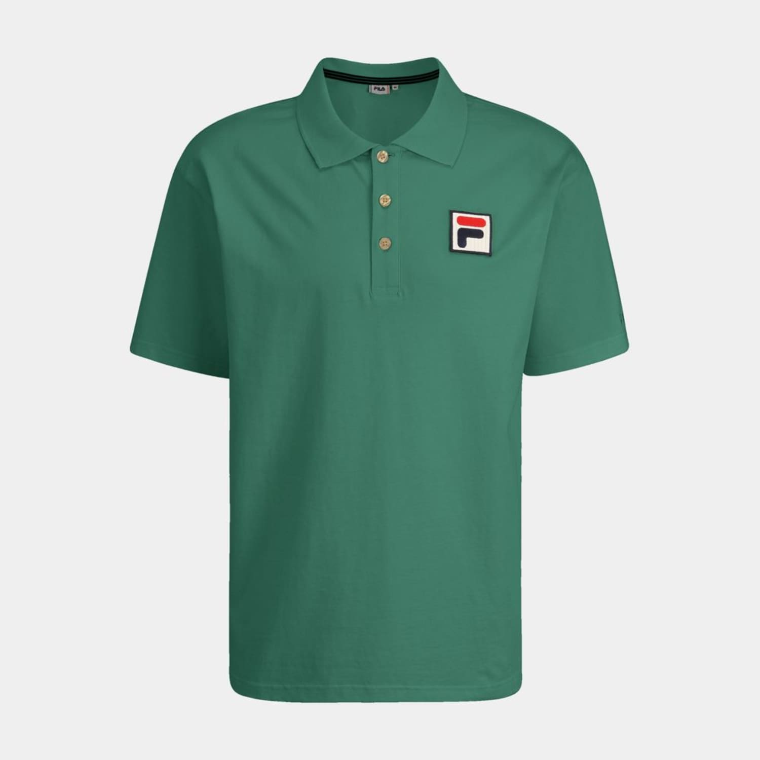Unisex polo in a relaxed fit with dropped shoulders made out of a dense dry cotton jersey quality. It is branded with an updated large F-box badge with bamboo backing at chest and a tonal dense embroidered Fila logo at sleeve. The poloshirt has a rib collar and a button placket with branded buttons.