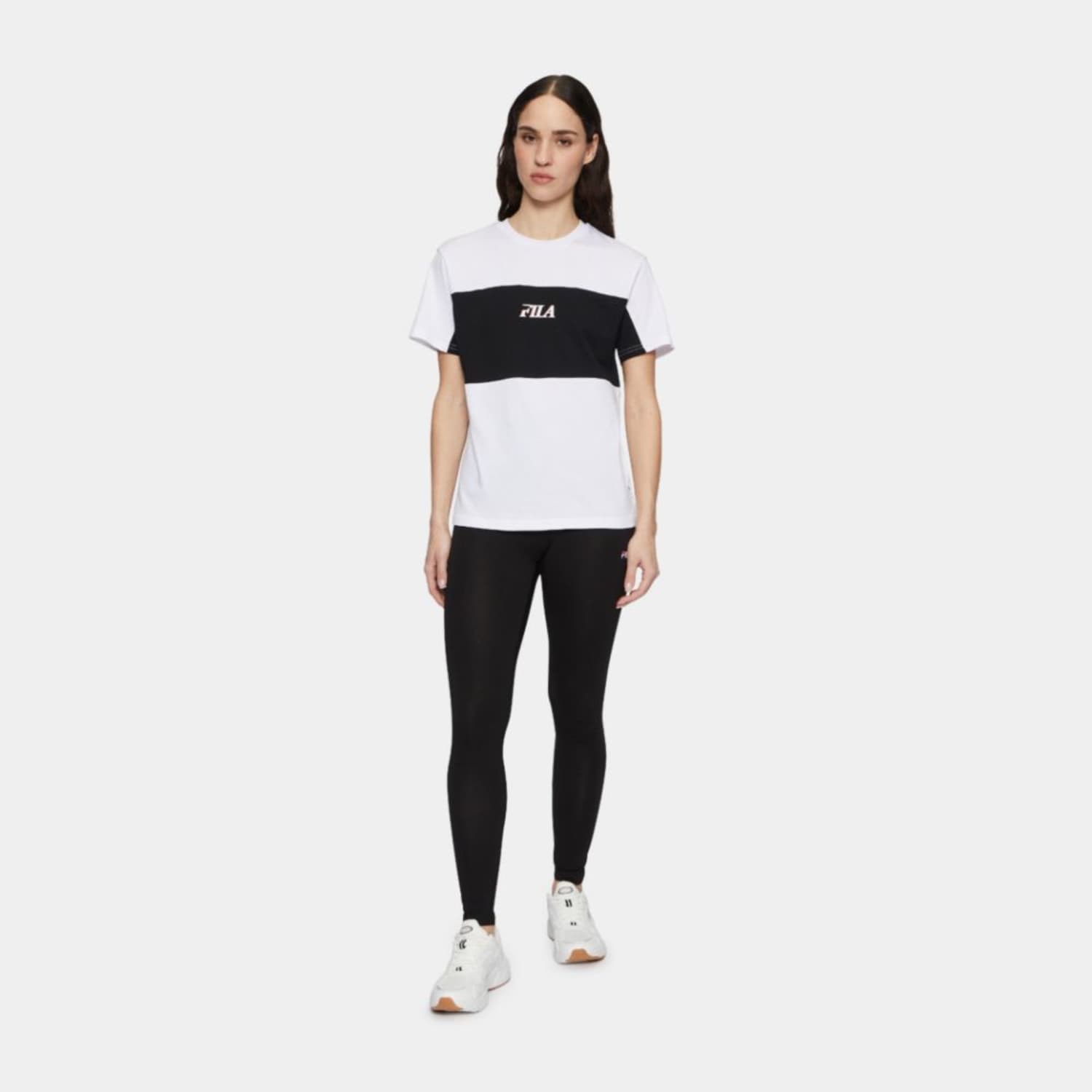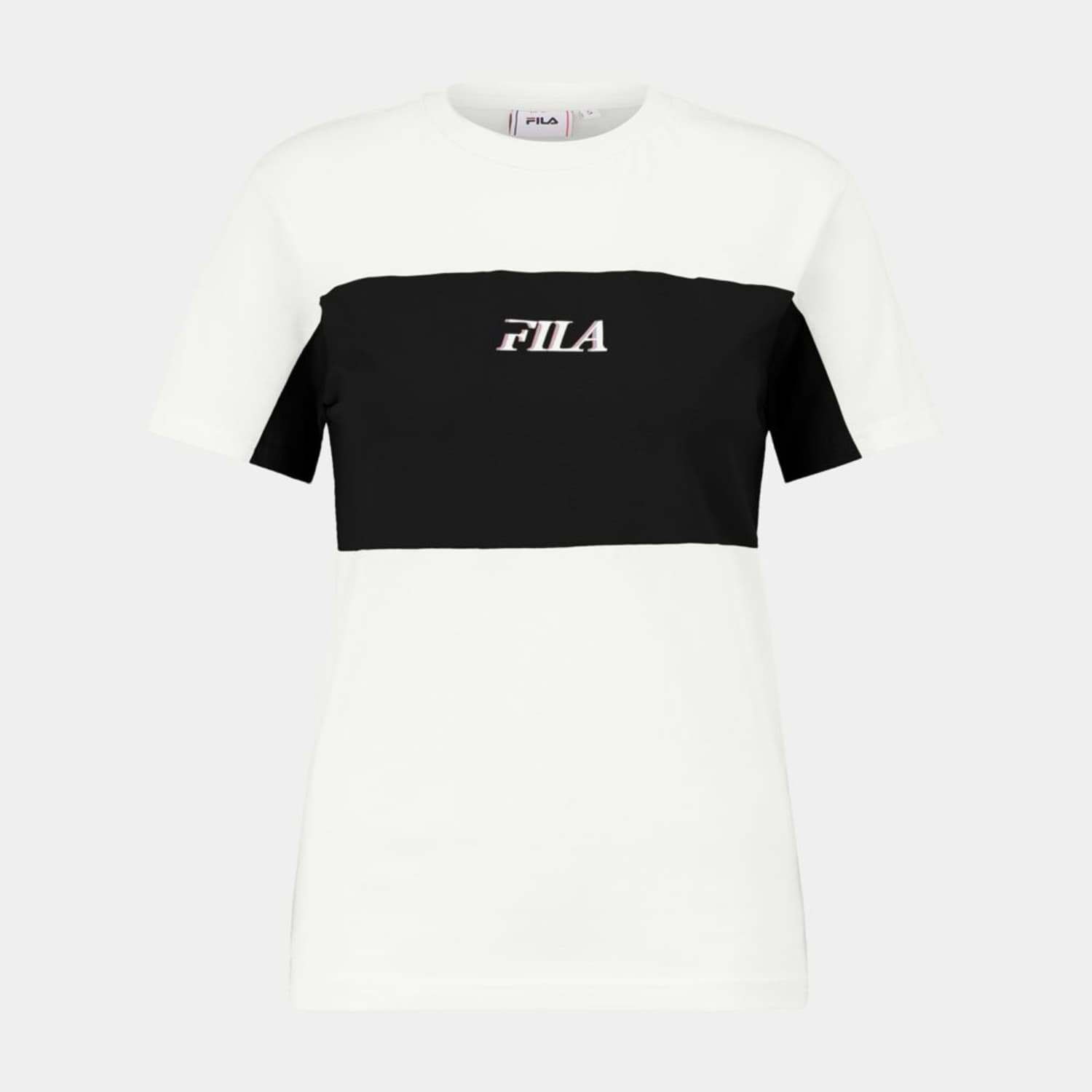 Regular fit blocked tee in a cotton single jersey quality. The shirt has blocked chest with a small Fila graphic printed at center front and are branded with a Fila linear logo flag label at lower left side seam.