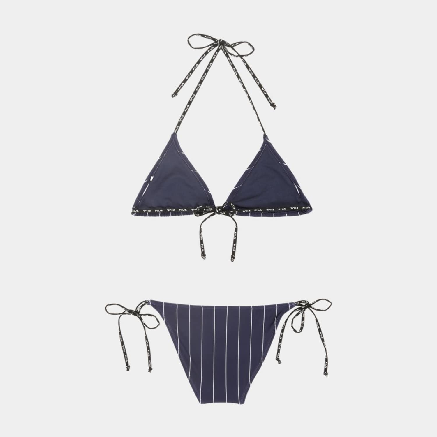 classic fila triangle bikini with Classic stripe all over print and branded logo straps