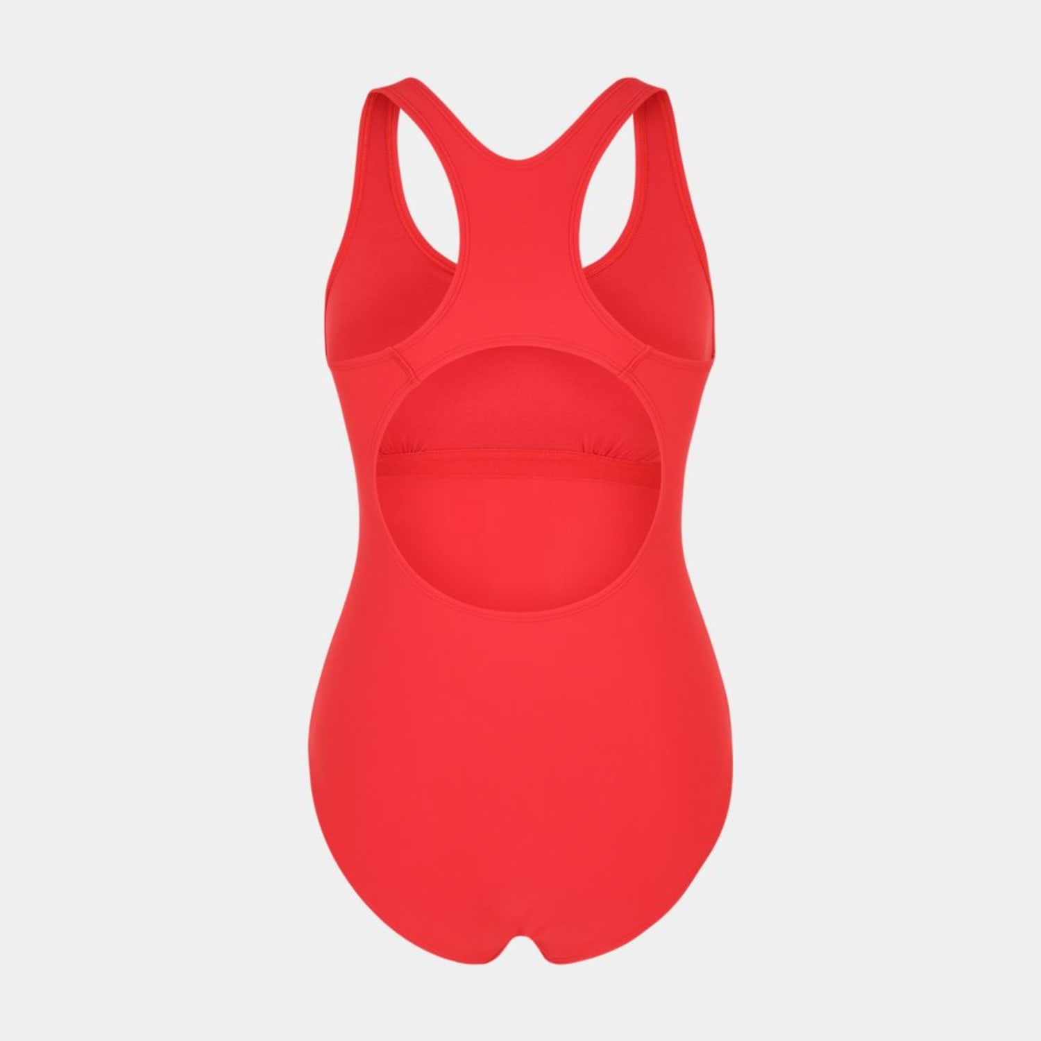Sporty swimsuit with a racer back for Women. In a single jersey lycra quality and branded with a large linear Fila Print along side.